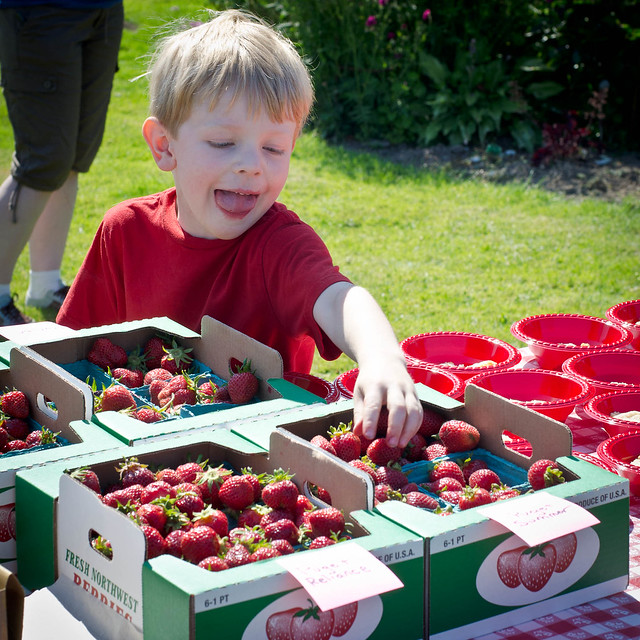 Summer weather has arrived, and we’re getting outside to make the most of it. On Saturday, our friends Dawn and Eric arranged a trip to the Skagit Valley to pick strawberries. You should read their account of their trip last year; they do a fabulous job describing the incredible berries we got to enjoy on our trip.